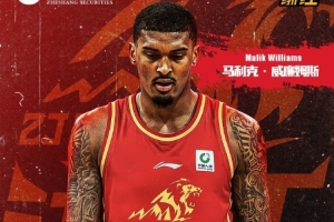 为增强球队内线实力,经管理层与教练组研究决定,浙江广厦篮球俱乐部正式签约美国运动员球员马利克·威廉姆斯(Malik Williams)。今天下午,马利克·威廉姆斯已经抵达杭州。待相关材料完备并报送至CBA公司审核通过后,这名内线悍将,将身披浙商证券男篮4号战袍,代表浙江浙商证券征战本赛季接下来的比赛。