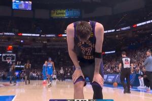GIF-东契奇受伤倒地捂着后侧大腿